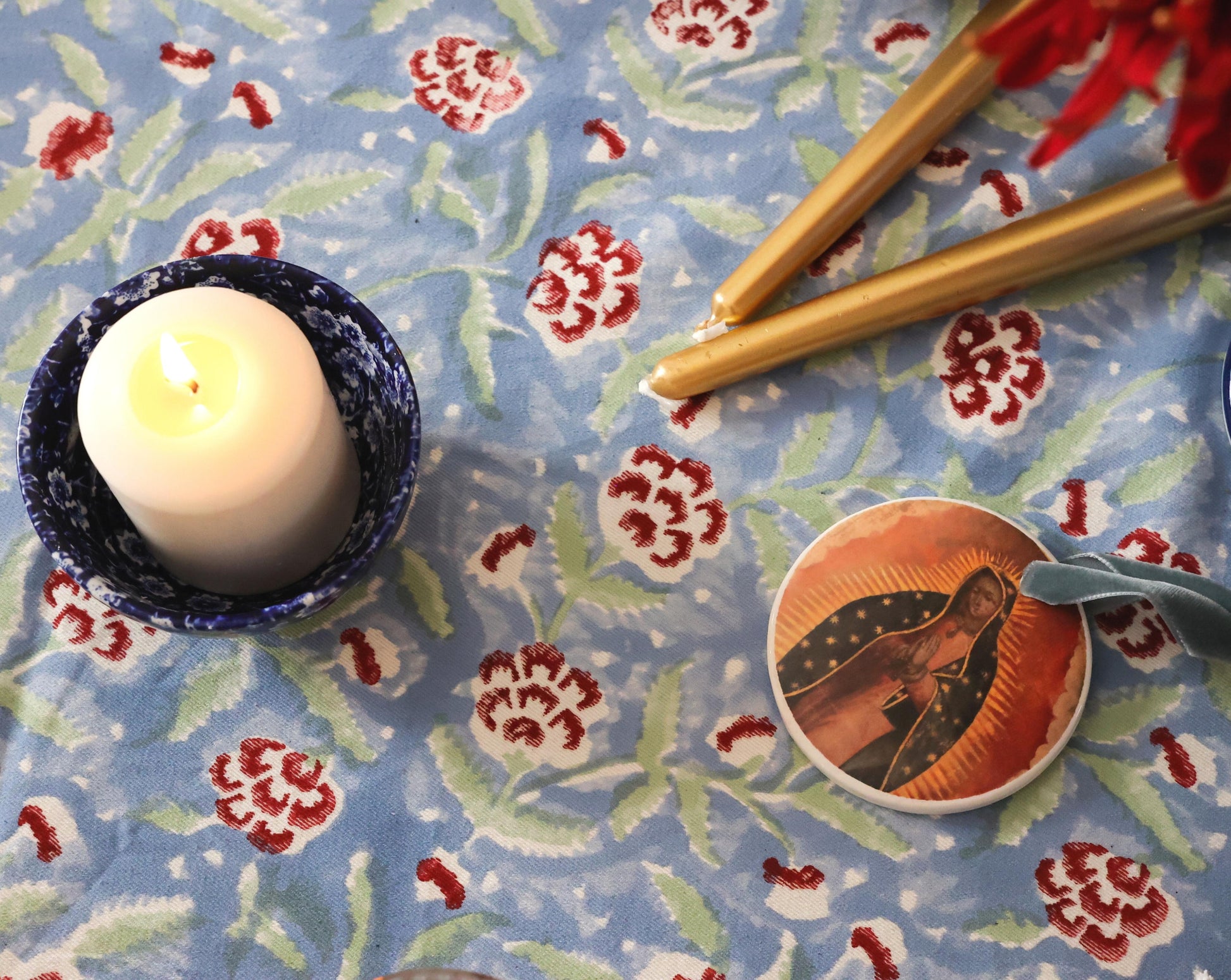 INSPIRATION: The feast day of Our Lady of Guadalupe is on December 12, making this the perfect Christmas collection! She is often depicted wearing turquoise or blue with pops of red and hints of green.