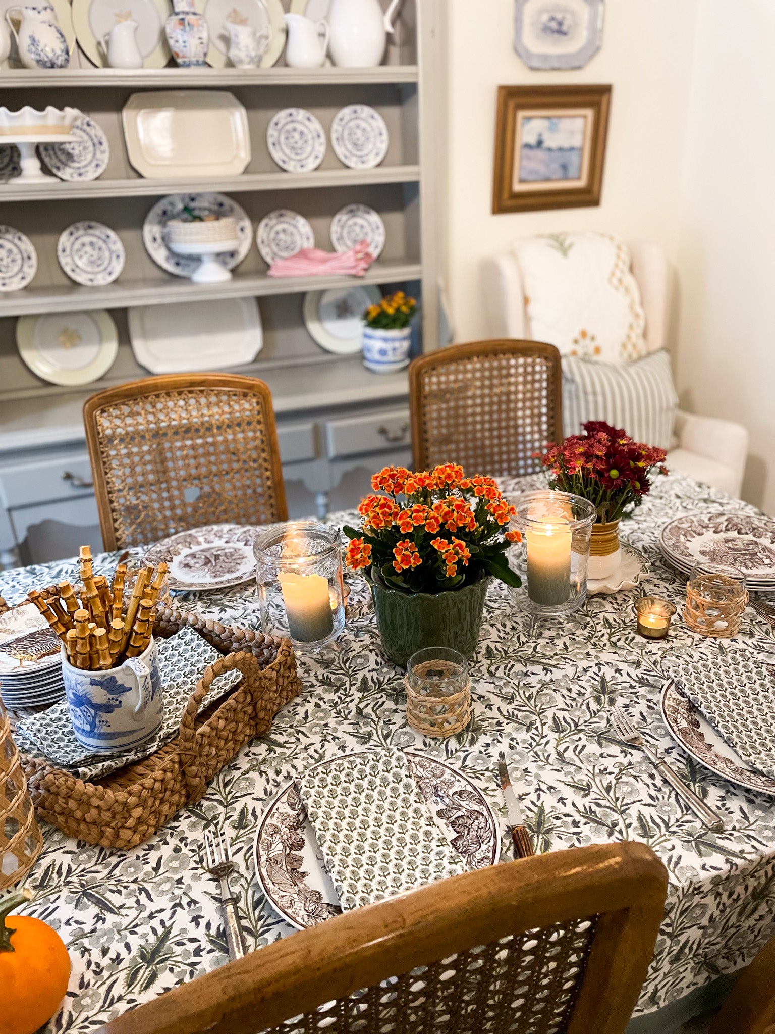 PRODUCT DESCRIPTION: This tablecloth is hand block printed on 100% cotton canvas, which is a heavy and very durable, stain resistant fabric. Given the nature of the hand block print process, expect variations throughout. We believe this adds to the charm of the design.