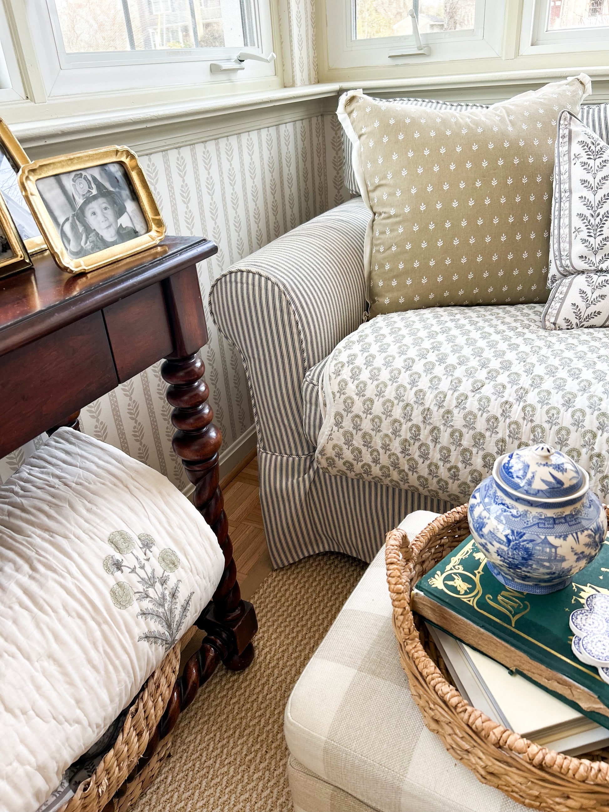 PRODUCT DESCRIPTION: Each quilt is hand block printed and hand quilted in India from ethically-sourced materials. The quilts are printed on 100% Organic cotton with double batting. Reversible, diamond-quilted, scalloped edge with a white trim. They make the perfect addition as a cozy throw for a couch or queen/king bed.